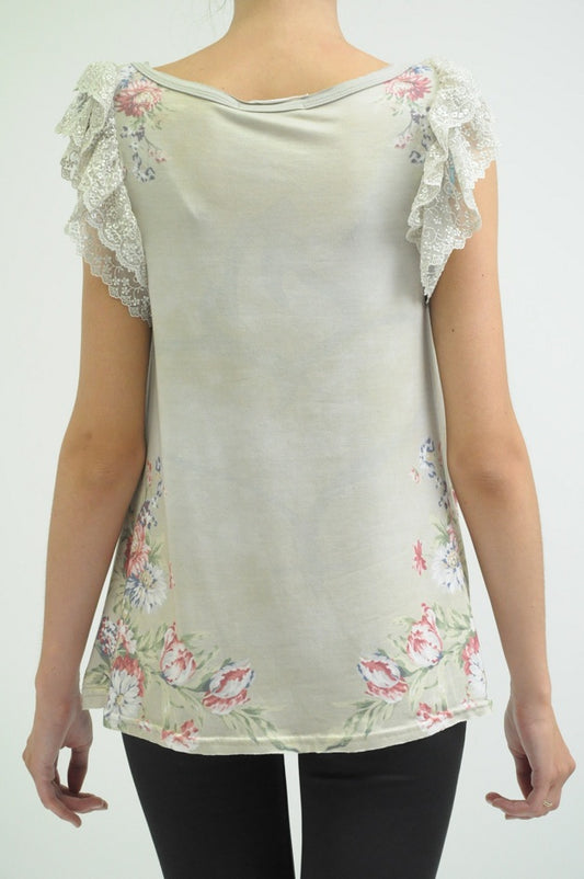 Light Pink 3D Rose Embellishing Sheer Asymmetric Blouse