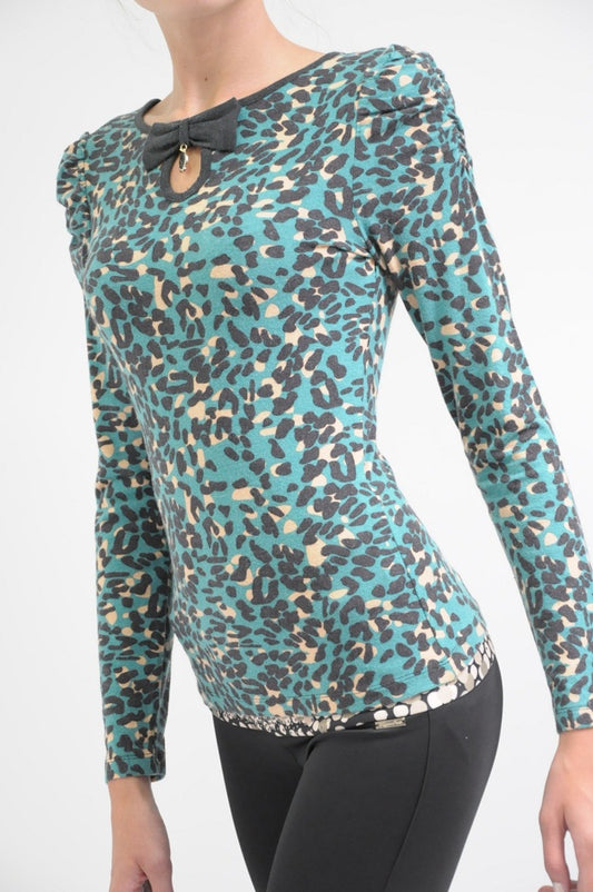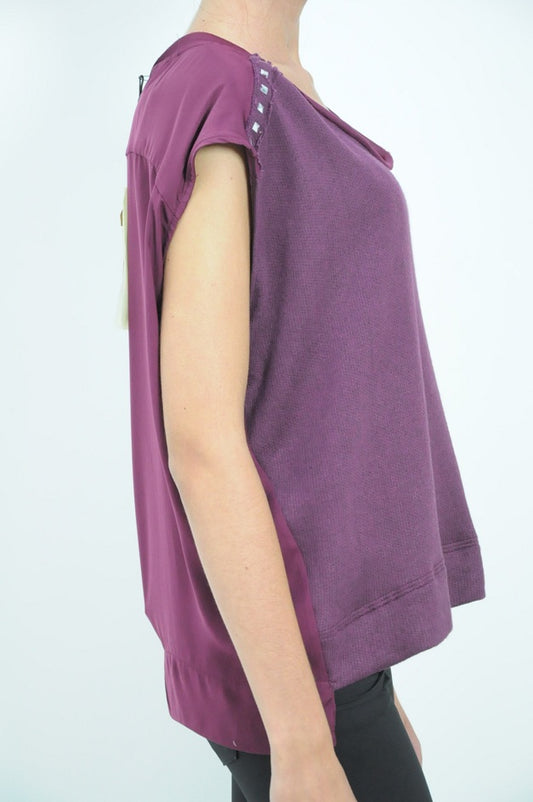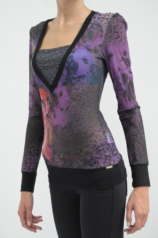 Purple Printed Sheer Long Sleeves Stretchy Blouse