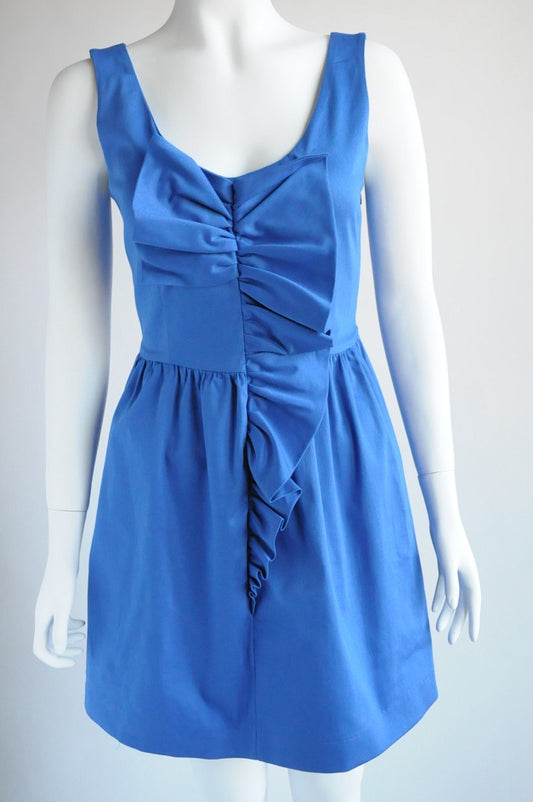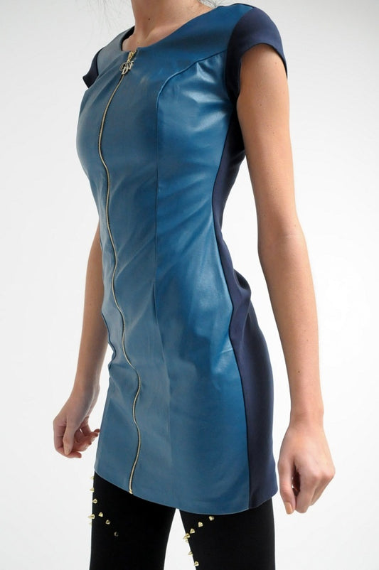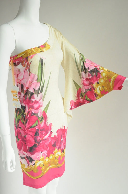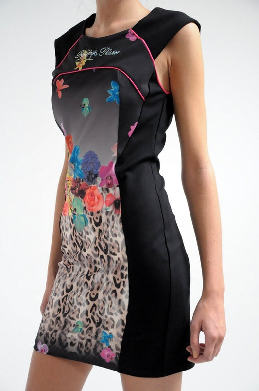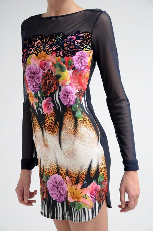 Dark Blue Floral printed Sheer Sleeves Swing Dress