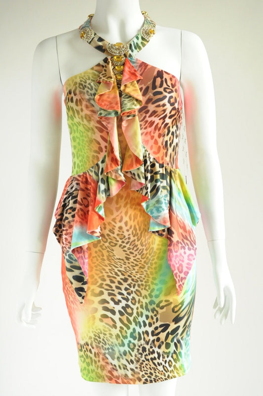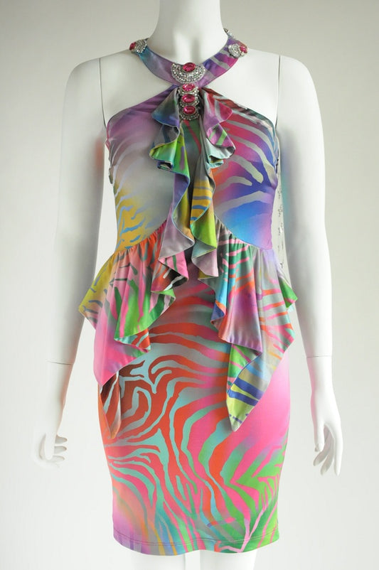 Pink Rhinestone Embellished Lace Frilled Bodycon Dress