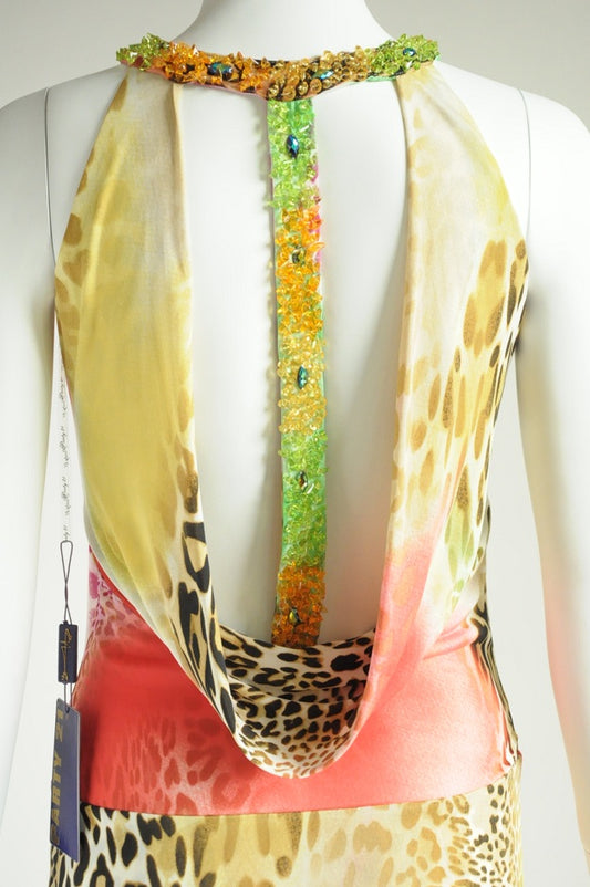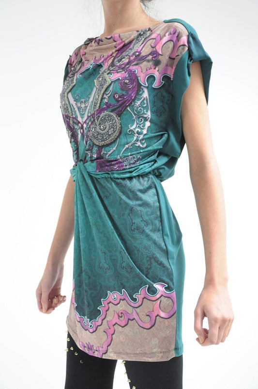 Bottle Green Rhinestone Embellished Printed Mini Dress