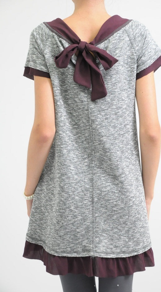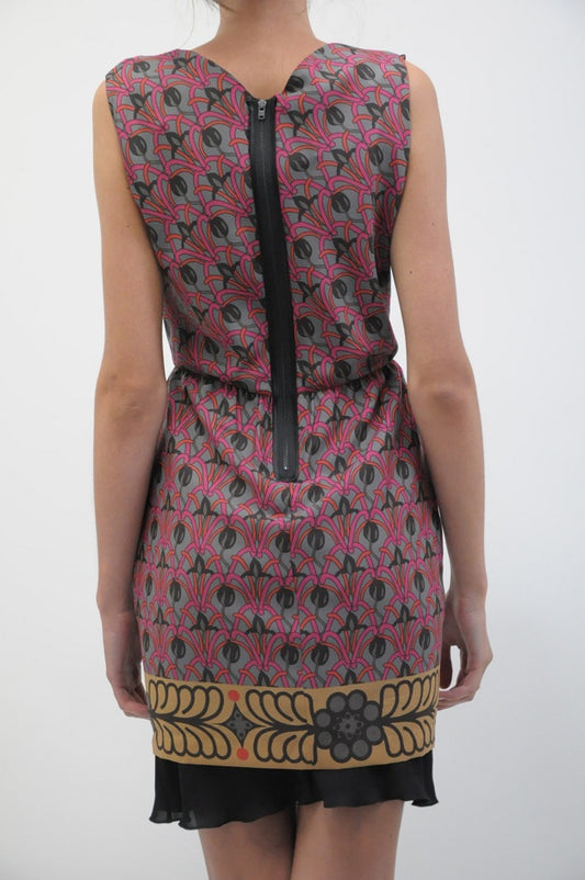Pink and Grey Floral Printed Chiffon Swing Dress