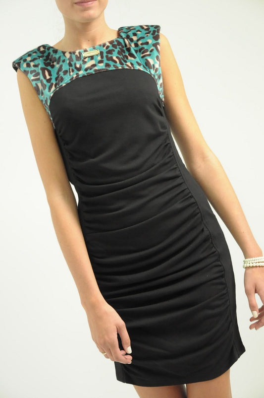 Green Leopard Fur Detailed Ruched Bodycon Dress