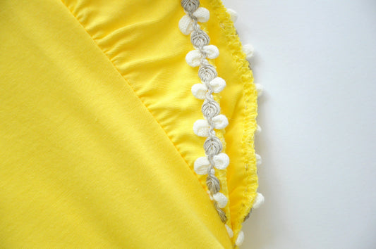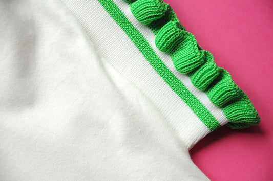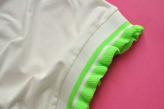 Cream soft cotton tee with extreme knit frill neon green sleeves