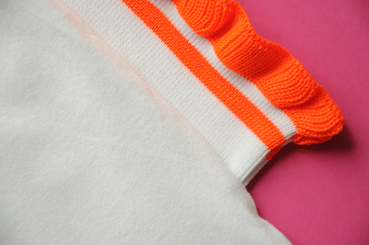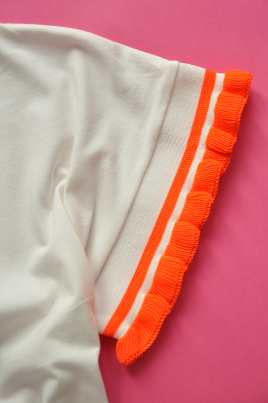 Cream soft cotton tee with extreme knit frill orange sleeves