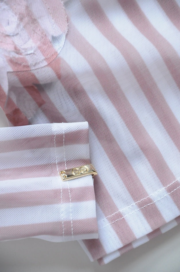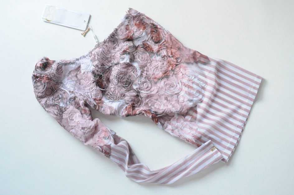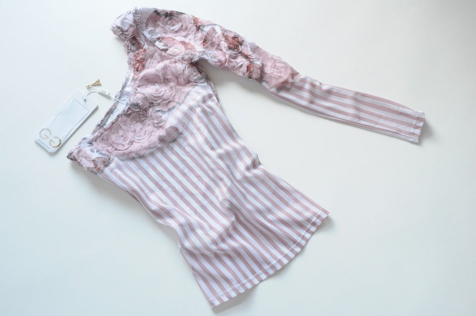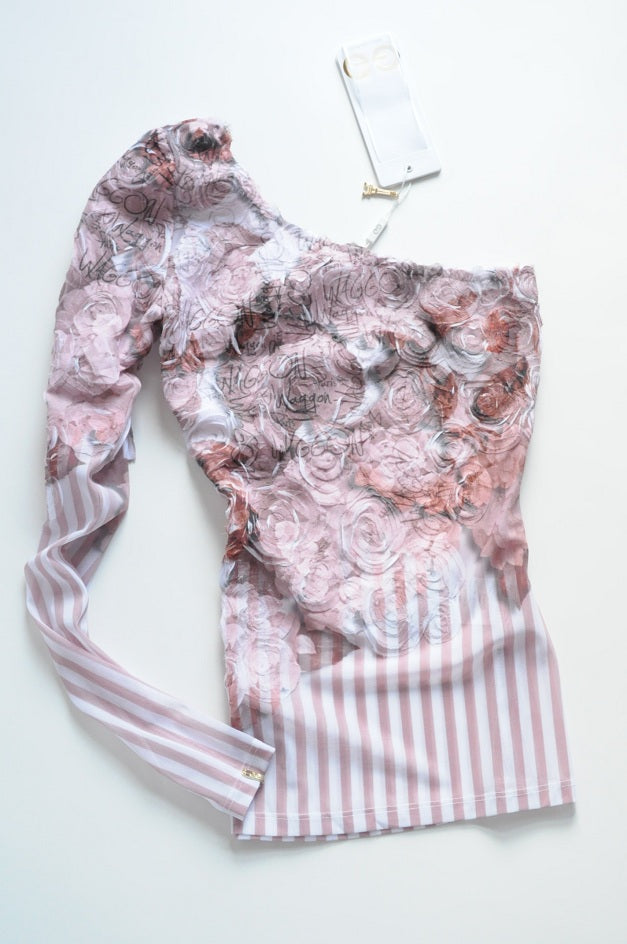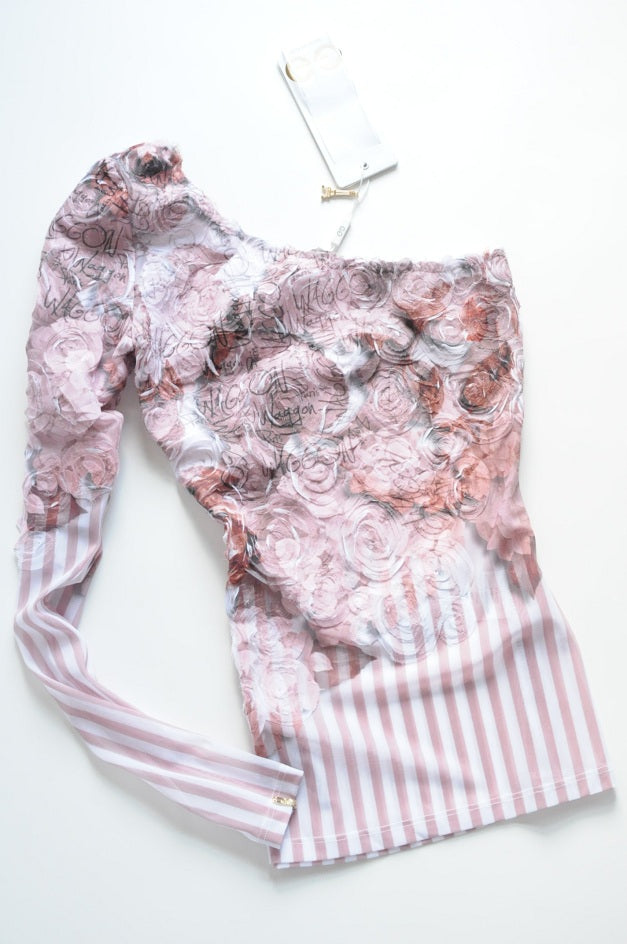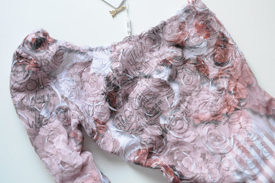 Light Pink 3D Rose Embellishing Sheer Asymmetric Blouse